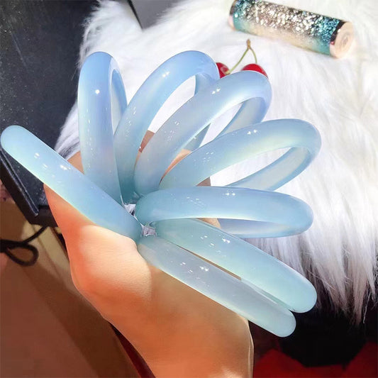 Ice Blue Chalcedony Bracelet Women's Thin Round Agate Chinese Style Jewelry Jade